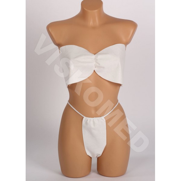 BIUSTONOSZ JEDNORAZOWY WYKONANY Z MIĘKKIEJ NIEPRZEITŚUWJĄCEJ WISKOZY, WIĄZANY NA TROKI Z TYŁU
