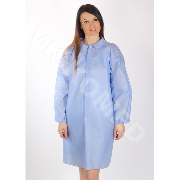 JEDNORAZOWY NIESTERYLNY OCHRONNY FARTUCH NA NAPY WYKONANY Z NIEPRZEŚWITUJĄCEJ WŁÓKNINY SMMS Z GUMKĄ W RĘKAWACH