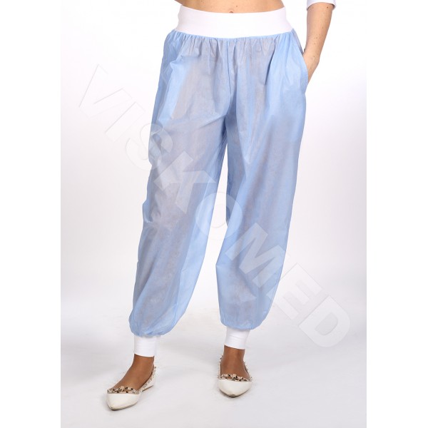 SPODNIE ZABIEGOWE JEDNORAZOWE WYKONANE Z NIEPRZEŚWITUJĄCEJ WŁÓKNINY SMMS Z DWOMA KIESZENIAMI